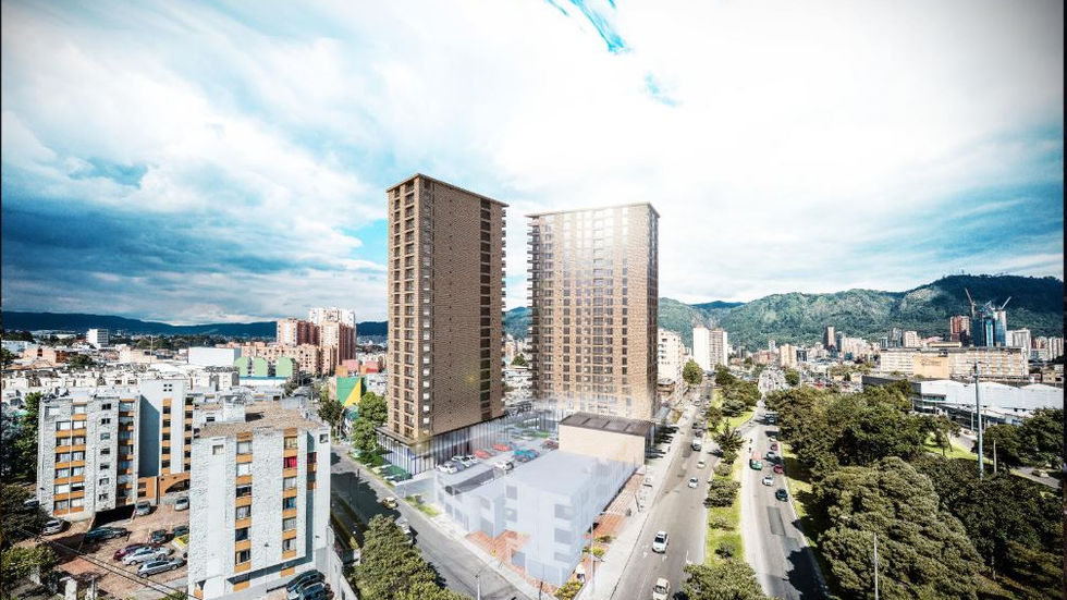 EÓN es un edificio residencial que actualmente está sobre planos y se espera salir a ventas el 27 de septiembre de este año. El proyecto está compuesto por dos torres de 23 pisos cada una, conectadas en el segundo piso por un puente donde están ubicadas las zonas húmedas del edificio, En primer piso están conectadas por medio de un paseo comercial que además conecta la avenida de las Américas con la calle 24. Los dos primeros pisos están equipados con toda la parte social y comercial del edificio, contando con zonas húmedas, teatrino, cava de vinos y locales comerciales de hasta 500 metros cuadrados. La torre 1 cuenta con 5 tipologías de apartamentos entre30 - 60 metros cuadrados y la torre 2 con 10 tipologías desde 27-125 metros cuadrados ubicados al rededor y un vacío central.