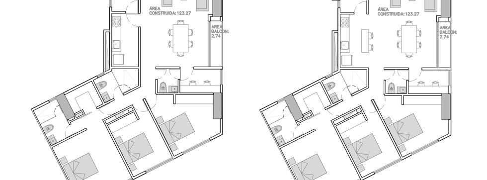 Finalizada la planimetría general, empezamos con el diseño de los apartamentos. Los lotes en los cuales va a ser construido EON eran antes unos pequeños edificios residenciales, con ellos la negociación fue por medio de metros cuadrados en el nuevo edificio, a estas personas les denominamos los aportantes. Gran parte de los diseños de los apartamentos son para ellos, dado que el resto de apartamentos se van a manejar para la venta a partir de plantas tipo.